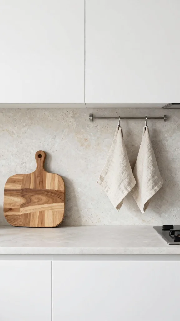Incorporating textiles like linen dish towels or a soft rug can also soften hard surfaces, creating a balanced atmosphere. Remember, the goal is to complement the minimalist principles while keeping the design engaging.