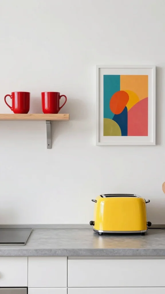 Consider colorful artwork or bold appliances as fun accents that can serve as focal points. This approach allows you to express your individuality while maintaining a cohesive design.
