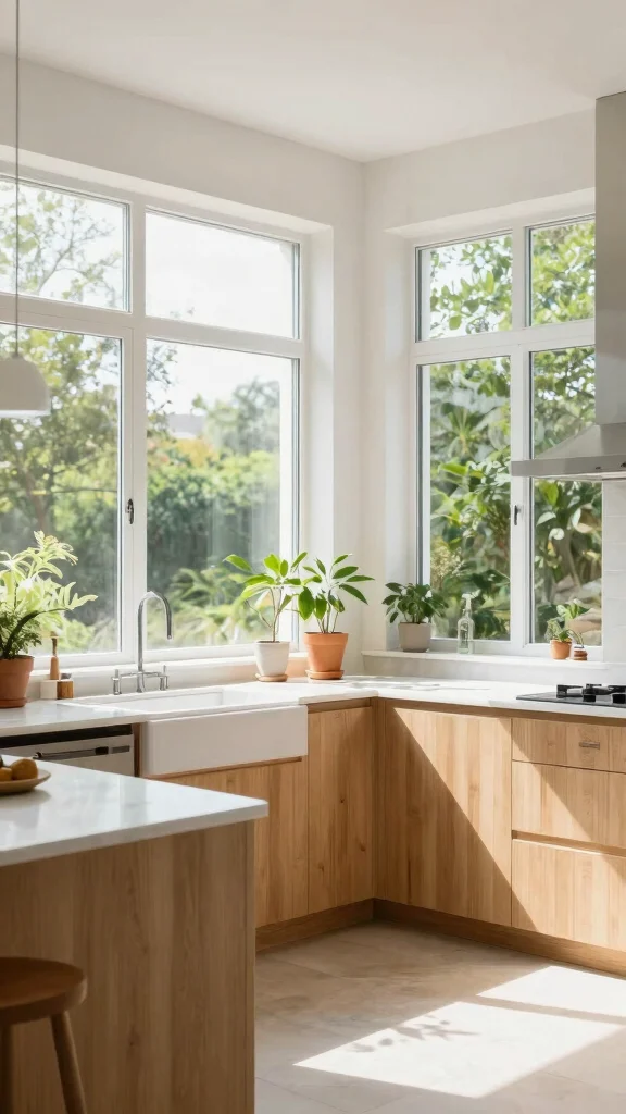 Incorporate large windows or skylights to enhance natural light, making your kitchen feel more open and inviting.