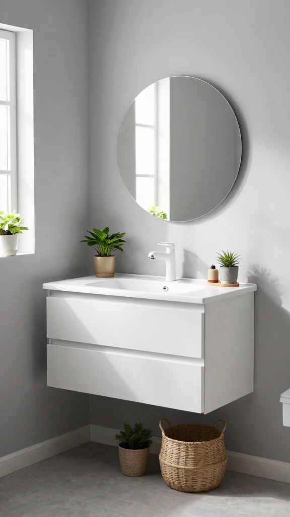 To implement this look, consider these practical tips: look for budget-friendly floating options at local home improvement stores, and opt for light colors to amplify brightness. Pair your vanity with wall-mounted faucets to further enhance the space-saving benefits.