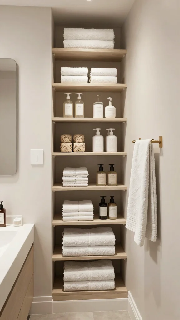 This approach not only maximizes space but also introduces a chic aesthetic. The mix of textures and materials elevates your bathroom’s design while keeping it inviting.