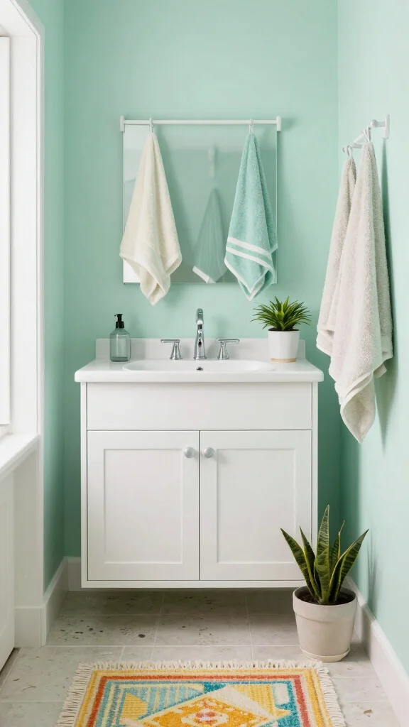 – Choose unique fixtures like vintage soap dishes or colorful towels.