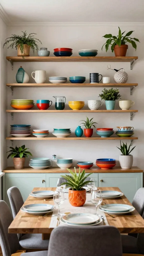 Open shelving is not just practical; it’s also an excellent way to showcase your personal style in your small dining area.