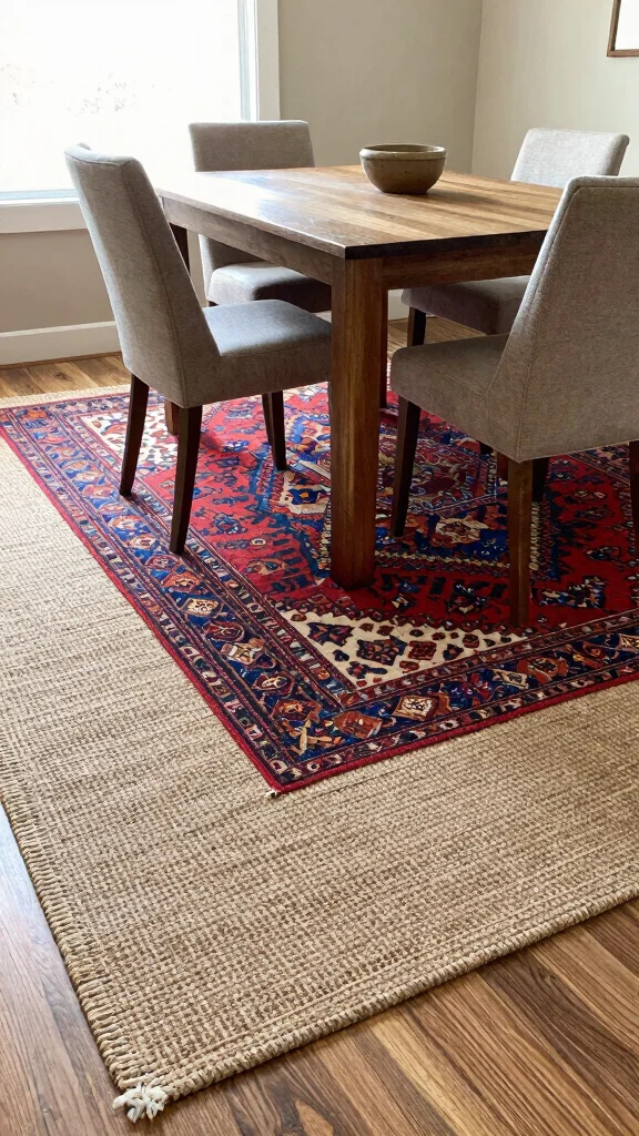 This technique not only enhances the aesthetics but also provides a cozy underfoot experience, making your dining area more inviting. Choosing complementary colors and textures ensures a balanced look that feels harmonious.