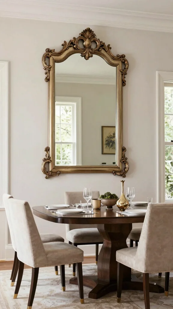 Mirrors can dramatically enhance your dining room by creating depth and reflecting light, making the space feel larger. A strategically placed mirror can visually expand your area while adding a decorative touch. Consider a large mirror on one wall or an artistic arrangement of smaller mirrors to enhance elegance and brightness.