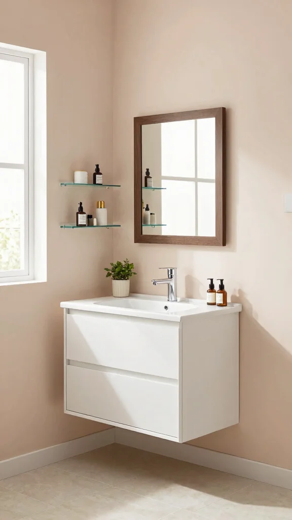 Start by thinking vertically and keeping the footprint open. Choose a compact vanity with built-in storage, a wall-hung toilet, and slim shelves to free floor space. A large reflective mirror or mirrored cabinet visually expands the room and improves lighting. Use light colors and cohesive finishes to enhance the sense of space. For space-saving decor, pick slim towel bars, recessed niches, and an over-the-door organizer to keep essentials handy without crowding surfaces.