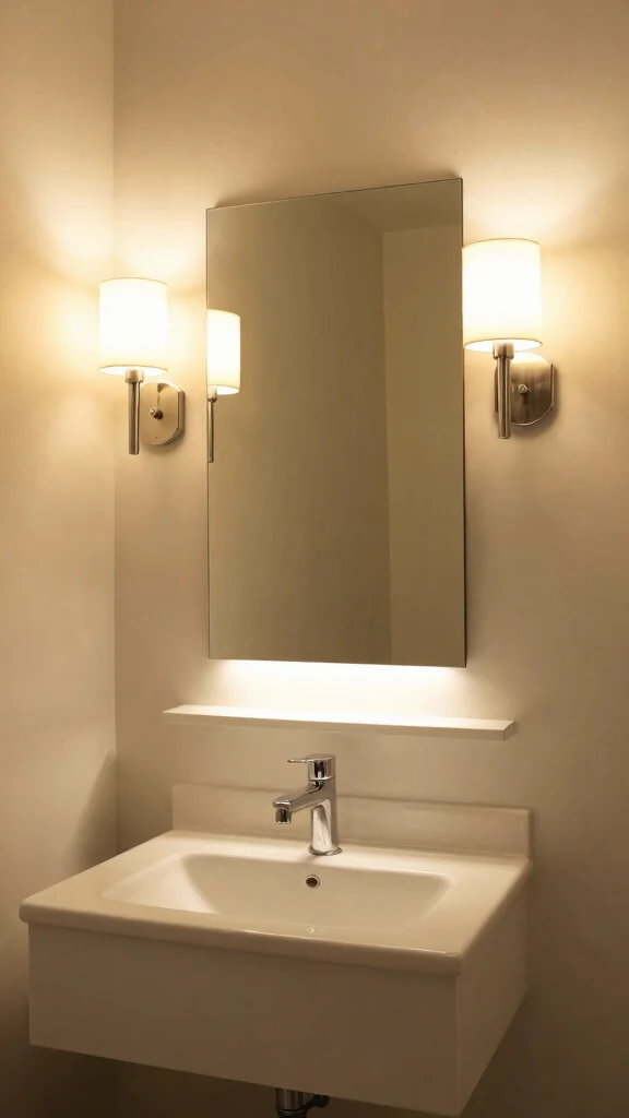 Color matters: light neutrals or soft pastels visually expand the room, while glossy finishes reflect light. Layer lighting: a bright ceiling light plus a pair of wall sconces or a backlit mirror creates depth and eliminates shadows in a half bath. A large mirror or mirrored cabinet doubles the perceived space and enhances the sense of airiness. Pair these with clear glass or frosted shower enclosures to keep lines clean and open, and you’ll get a dramatic boost from small bathroom design and space-saving decor ideas without a full remodel.