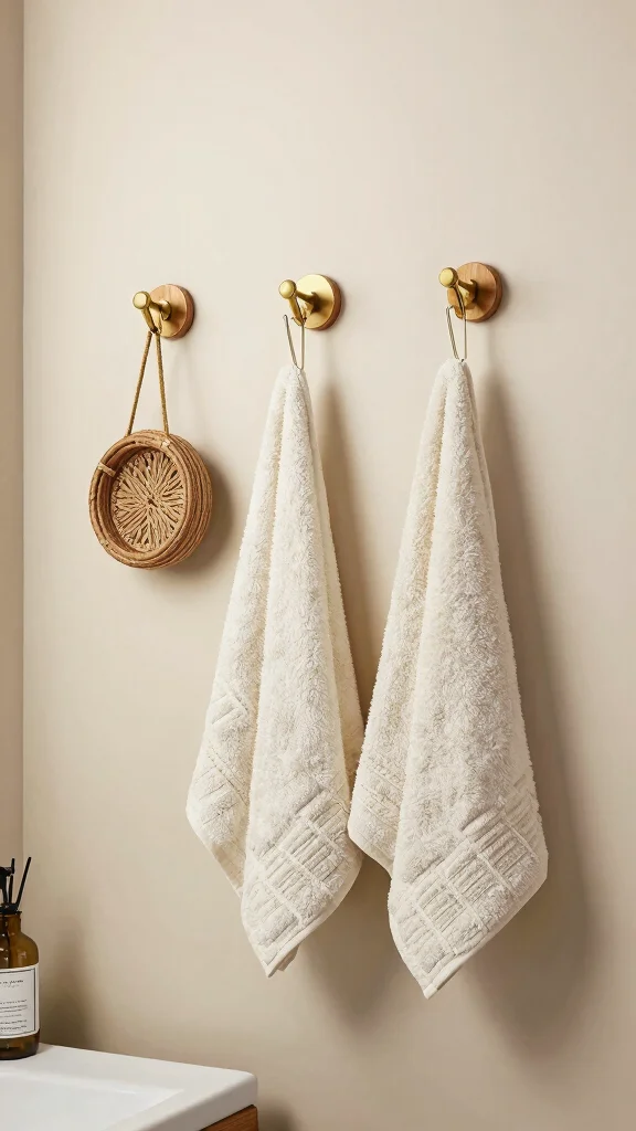 Creative wall hooks can transform an ordinary bathroom into a stylish, functional space.