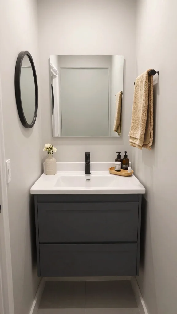 A sleek vanity is essential for small half bathrooms, seamlessly blending style with functionality. Look for compact designs that feature built-in shelving or drawers, keeping essentials organized and hidden away. A floating vanity can open up the floor space, creating an illusion of even more room.