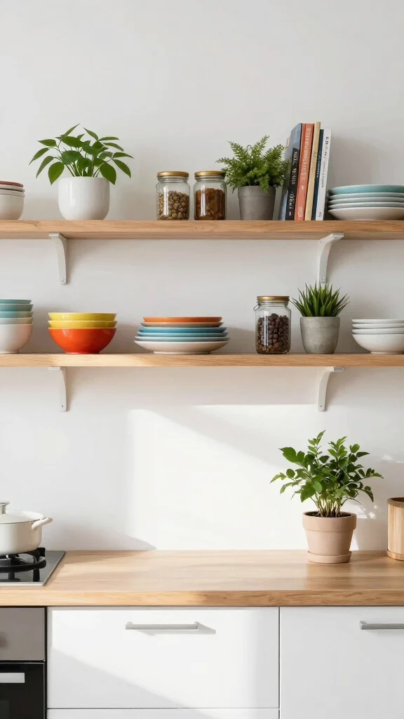 – Pair floating shelves with colorful dishware for a vibrant display.
