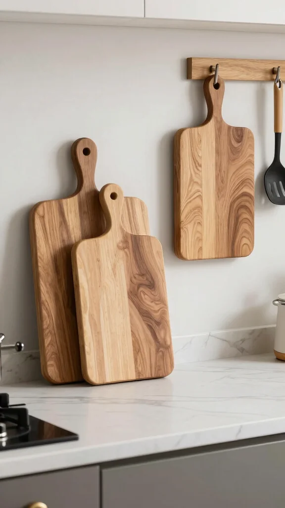 Cutting boards can serve as both practical tools and stunning decorative elements in your kitchen. Opt for beautifully crafted boards made from rich wood or elegant marble that can be displayed when not in use. Leaning them against a wall or hanging them on hooks offers a rustic feel while adding texture and warmth to the space. Incorporating decorative cutting boards keeps functionality at the forefront while enhancing your kitchen’s overall aesthetic.