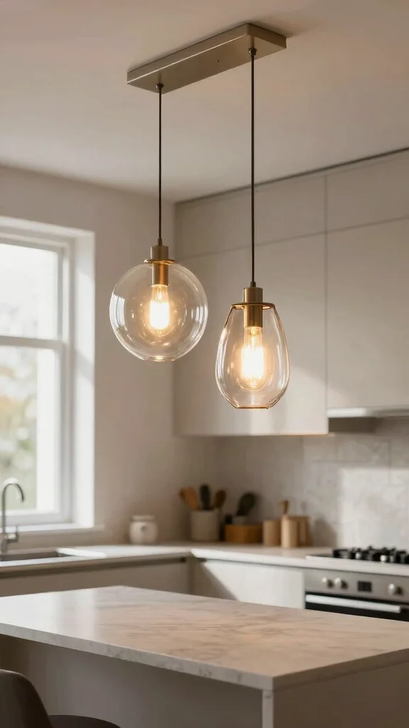 Incorporating distinctive light fixtures elevates your kitchen’s style while remaining practical and uncluttered.