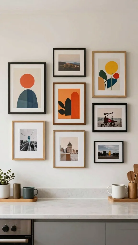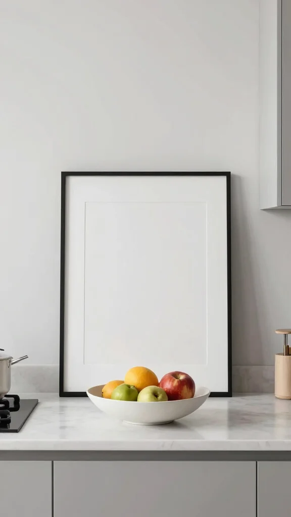 Using minimalist artwork enhances your kitchen’s sophistication while preserving a clutter-free environment.