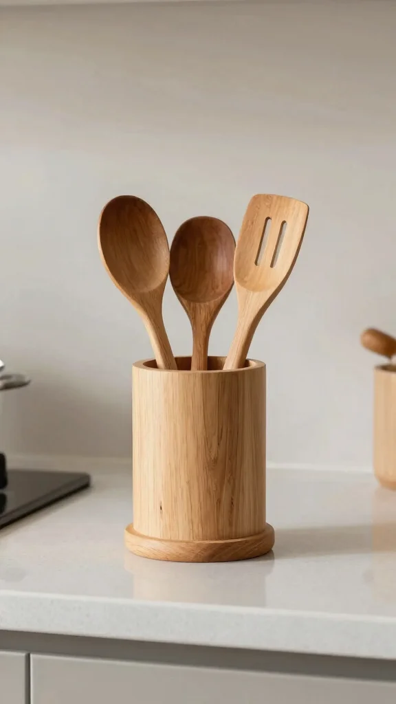 Stylish utensil holders serve a dual purpose, providing practicality while acting as decorative pieces that elevate your kitchen’s overall aesthetic.