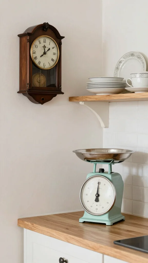 Incorporating vintage touches into your small kitchen can infuse it with charm and character while minimizing clutter. Seek out vintage kitchen tools or decor items that you can display without overwhelming your space. A classic vintage clock or an old-fashioned scale can serve as functional decor, while mismatched china adds a whimsical flair. Just remember to limit the number of vintage items to avoid visual chaos.