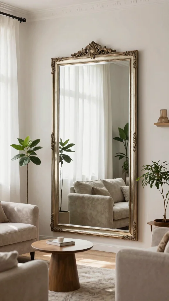 Consider hanging a large mirror on a focal wall or arranging smaller mirrors in a creative display. Tip: Choose mirrors with unique frames to add an artistic touch. Placing a mirror across from a window can also amplify natural light, brightening your space and creating a welcoming atmosphere.