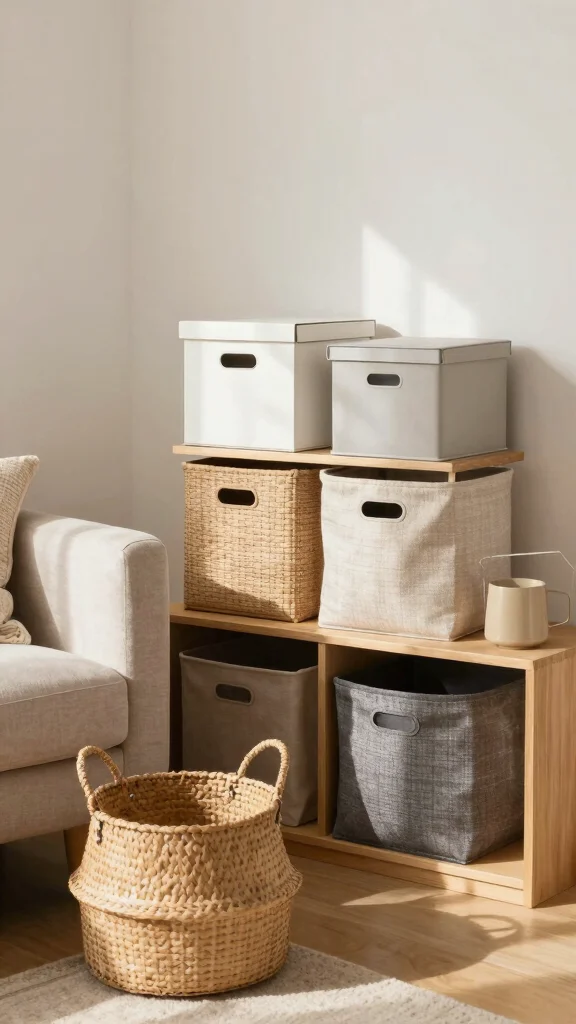 Select bins that complement your decor style—wicker baskets for a boho vibe or sleek boxes for modern aesthetics. Tip: Use labels for easy identification while keeping the overall look cohesive.