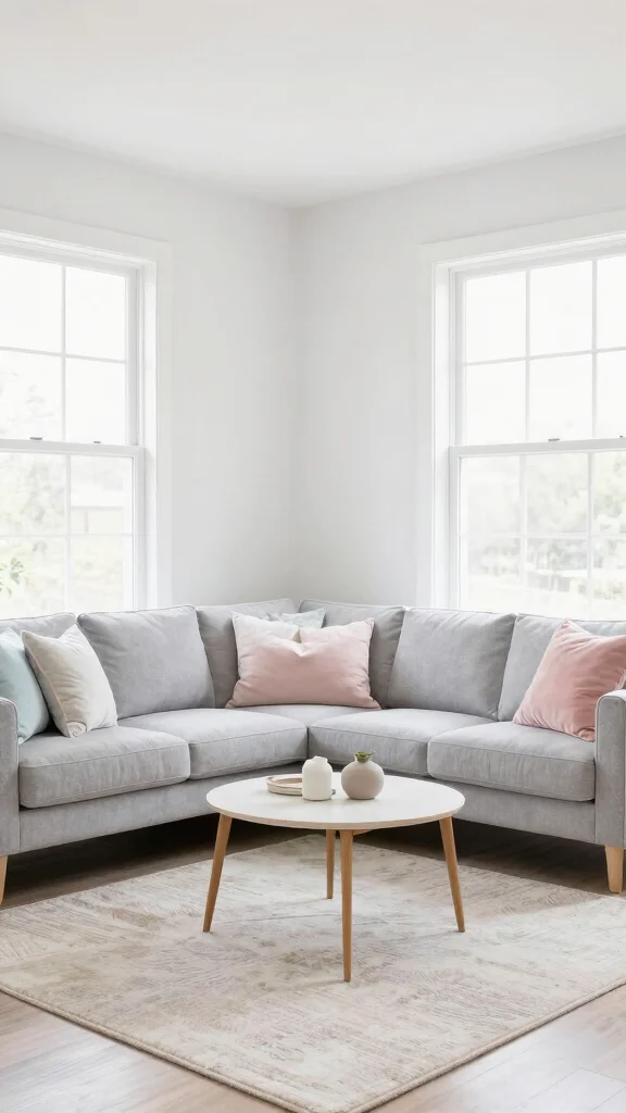 Choose light-colored sofas, curtains, and rugs to maximize this effect. Painting walls in gentle neutrals while adding colorful accessories, such as pillows and art, keeps the room lively. Tip: Maintain consistency in tones across surfaces for a seamless look. For instance, if your couch is cream, pair it with a light beige throw and soft white curtains to amplify the feeling of space.