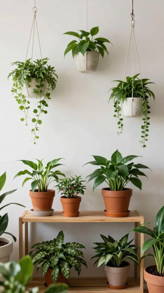 Mix plants of various heights and sizes for visual interest. Tip: Hang plants from the ceiling or utilize wall planters to introduce additional layers. Choose low-maintenance varieties suitable for your light conditions, ensuring your living area remains vibrant with minimal effort.