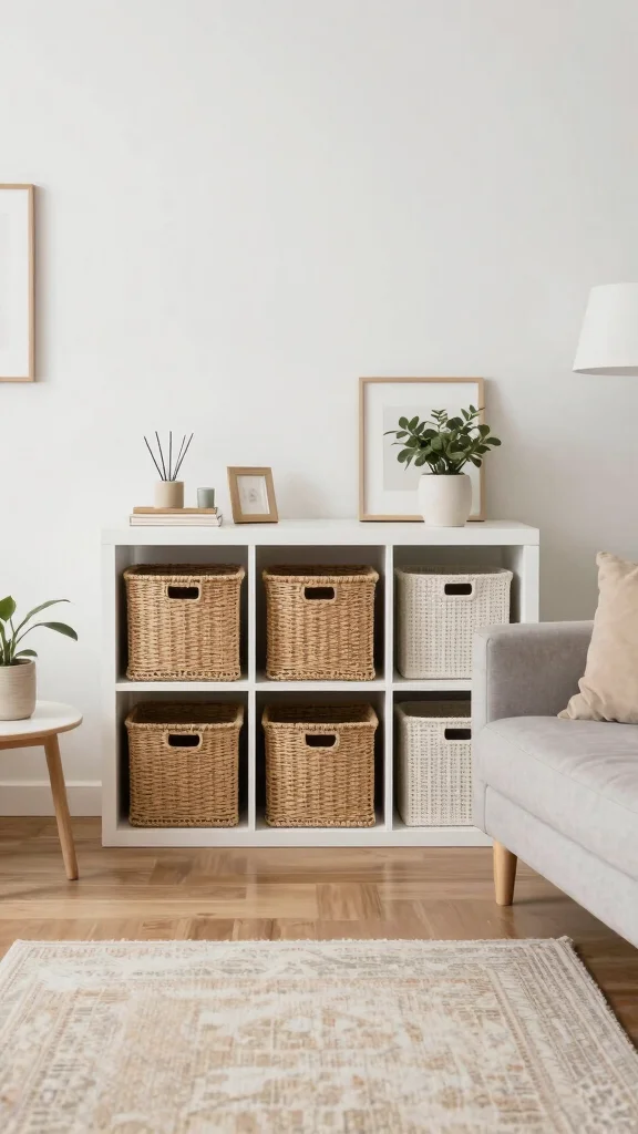 – Use decorative baskets for a stylish storage option.