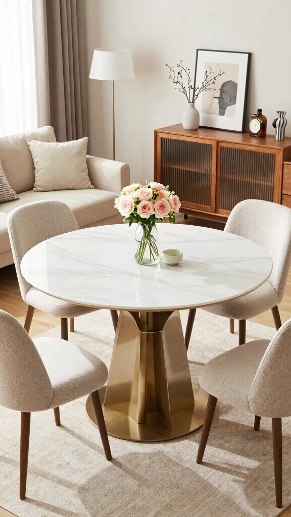 A round table can introduce a softer, more inviting atmosphere to your small living room with a dining area. Its shape promotes conversation and allows for easier movement throughout the room. Additionally, round tables can fit snugly into corners or along walls, maximizing your space without sacrificing style.