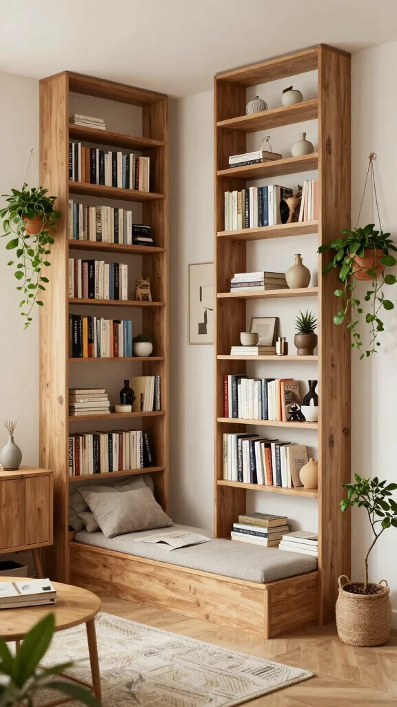 Incorporating vertical storage solutions, like tall bookcases or cabinets, helps keep your living area organized and spacious.