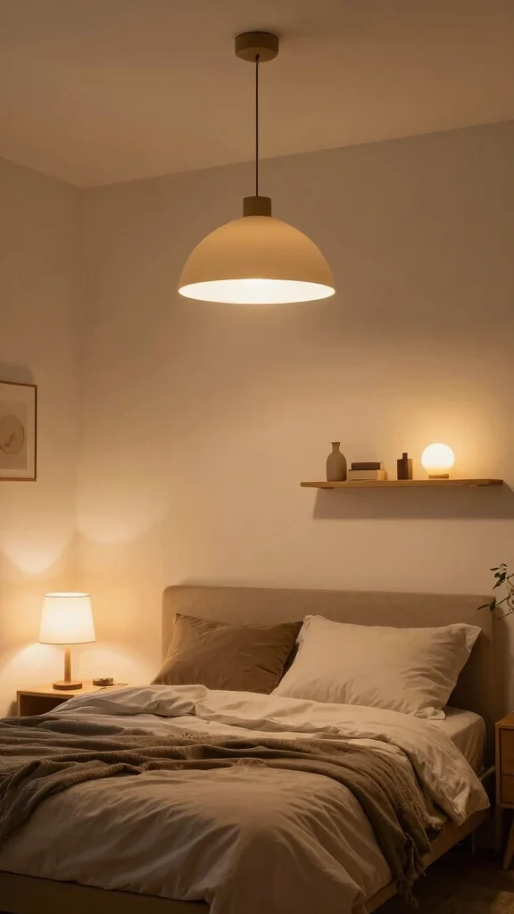 Consider a statement pendant light as the main source, complemented by bedside lamps for reading and accent lighting to highlight decor. Additionally, incorporating dimmers allows you to control brightness throughout the day.