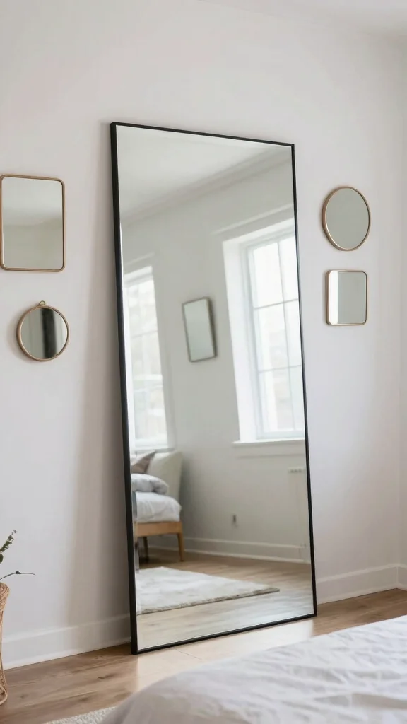 Consider a large mirror on one wall or a series of smaller mirrors arranged artfully to add dimension and charm. Use framed mirrors that align with your decor style, ensuring they serve both aesthetic and functional purposes.