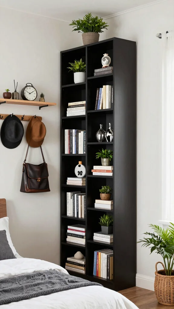 Install shelves above your bed or desk to showcase books or decorative items, keeping them easily accessible while maintaining tidiness. Wall hooks are excellent for hanging bags, hats, or jewelry, adding style and functionality.