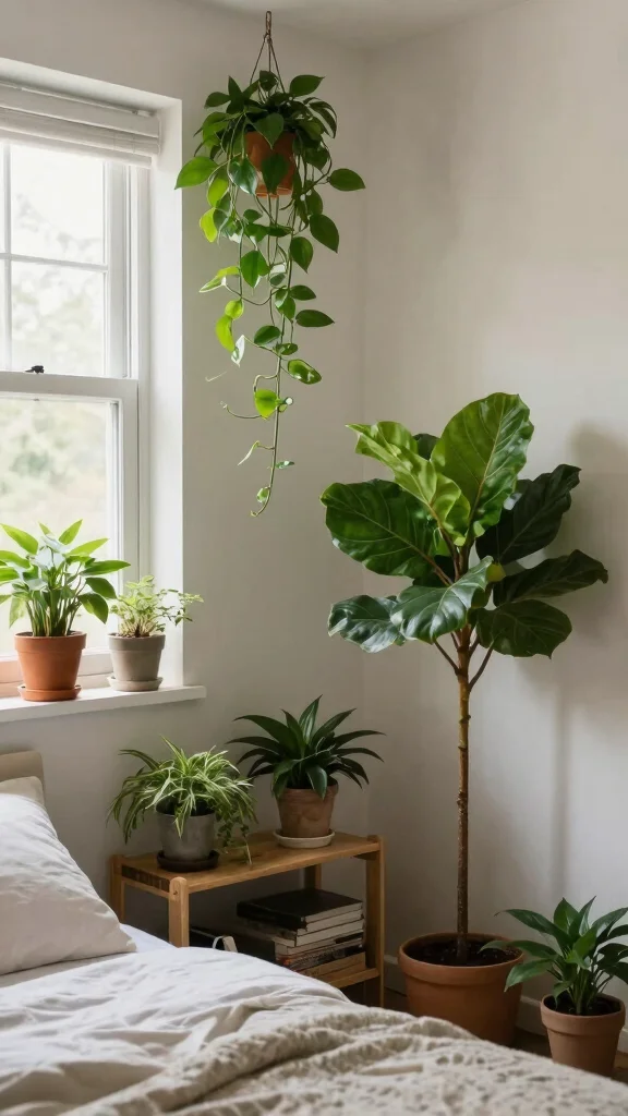 Introducing plants into your small bedroom infuses life and vitality into the space. Incorporating greenery not only enhances your decor but also purifies the air, fostering a healthier environment.